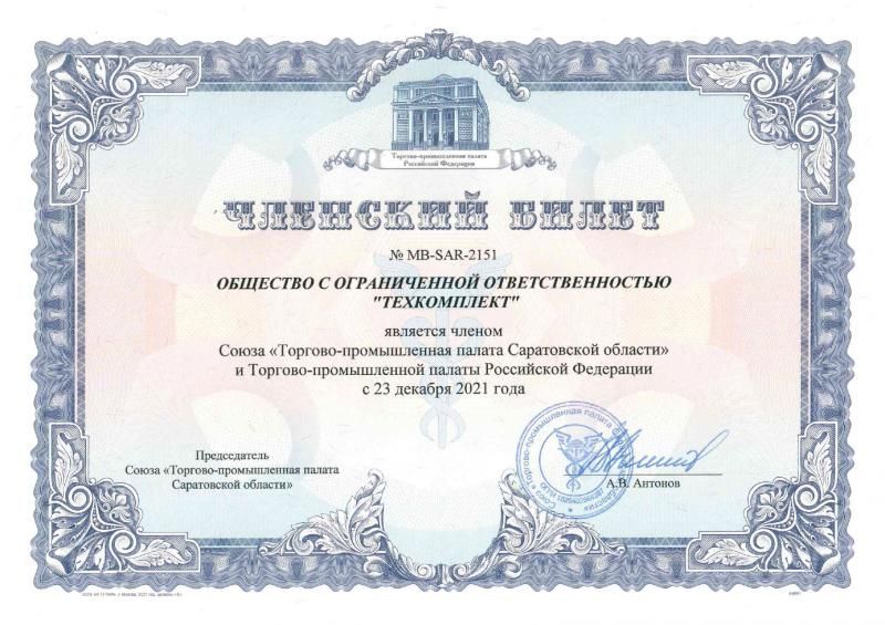 Вчера 26.05.2022 , в День предпринимателя, председатель Союза «Торгово-промышленной палаты Саратовской области» Алексей Антонов, вручил нашей организации членский билет. Вручение происходило в торжественной обстановке, на котором присутствовал Генеральный директор ООО "Техкомплект" Ситяков Ренат Иванович.